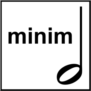 Clip Art: British Music Notation: Minim B&W Labeled