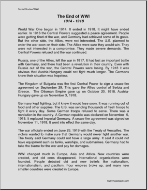 World War I Ending & Consequences (elem/upper elem)’ Comprehension