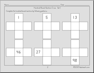 This Cross Sections 1 (elementary) Hundred Square Board is perfect to practice counting skills. Your elementary grade students will love this Cross Sections 1 (elementary) Hundred Square Board. Students use patterns to complete sections of a hundred square board.