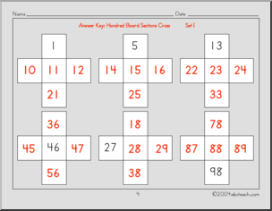 Cross Sections 1 (elementary) Hundred Square Board