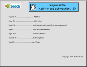 Addition and Subtraction up to 20 (K-1) Penguin Theme Unit