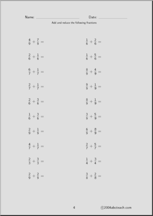 This Fraction Addition (set 4) Worksheet is perfect to practice fraction addition skills. Your elementary grade students will love this Fraction Addition (set 4) Worksheet. Printable fraction worksheets, addition fraction practice.