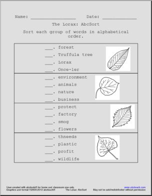 ABC Sort: The Lorax (upper elem)