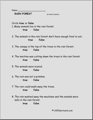 Comprehension questions and writing prompts to review Helen Cowcher’s story of a rain forest from the animals’ point of view. Common Core: ELA – RL5.6, RL4.6