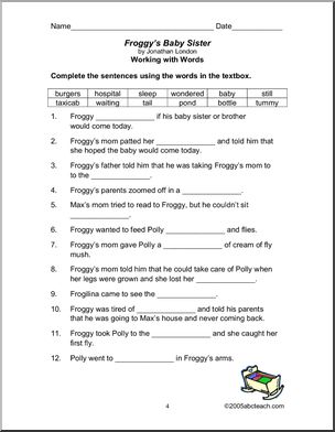 Use this ‘Book: Froggy’s Baby Sister (primary)’ printable worksheet in the classroom or at home. Your students will love this ‘Book: Froggy’s Baby Sister (primary)’. Book unit and vocabulary lesson corresponding with this series of stories about a young frog.